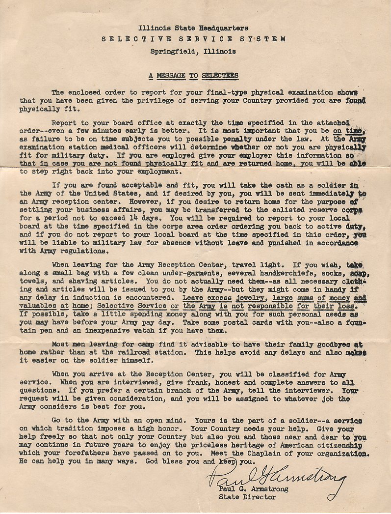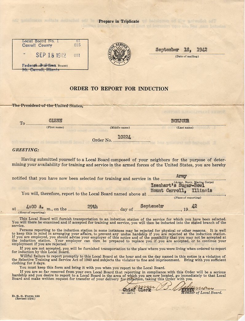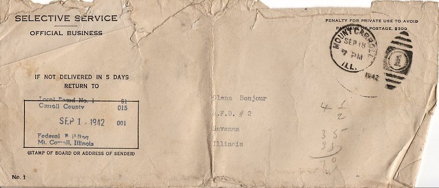 These are scans of the envelope and the letters from the Selective Service organization for Grandpa Bonjour.